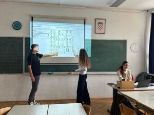 O izazovima umjetne inteligencije u području jezika govorile su učenice 2.c razreda Maja Dragobratović i Renea Marković u prezentaciji koju su izradile pod mentorstvom prof. Martine Pačić. Prof. Marija Tomić Veraja s učenicama 3.c razreda Nikom Pažin i Laurom Šaravanjom pripremila je izazovan Kahoot kviz prepoznavanja poezije koju je napisao AI ili poznati svjetski i hrvatski pjesnici. A ocjenu o tome tko je napisao bolju haiku pjesmu na temu proljeća – naši učenici ili AI, prepuštamo našim profesoricama hrvatskog jezika.
