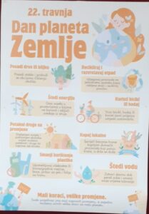Ovaj projekt bavio se našim odnosom prema okolišu. Za veću održivost i zaštitu okoliša u svakodnevnom životu i školi Naziv našeg projekta potiče svakog od nas na razmišljanje o tome što možemo učiniti za naš planet Zemlju.Znanstvena istraživanja upozoravaju da naše nepromišljeno ponašanje zagrijava Zemljinu atmosferu, morske životinje su ugrožene, a cijele vrste izumiru.Koliko smo toga svjesni? Što možemo učiniti protiv toga? To su bila pitanja na koja smo kroz dvanaest izazova pokušali odgovoriti.